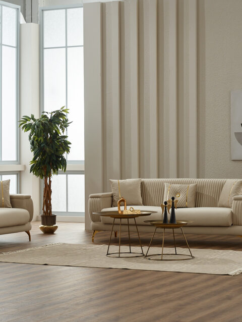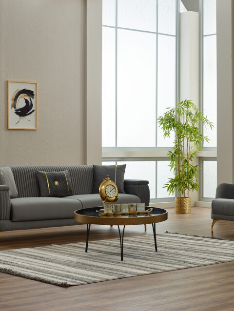 Conçu pour être aussi pratique qu’esthétique, ce canapé dispose d’une assise large et confortable, de dossiers rembourrés et de coussins assortis pour un maintien optimal. Sa structure robuste et ses pieds métalliques assurent une bonne stabilité et une excellente durabilité.