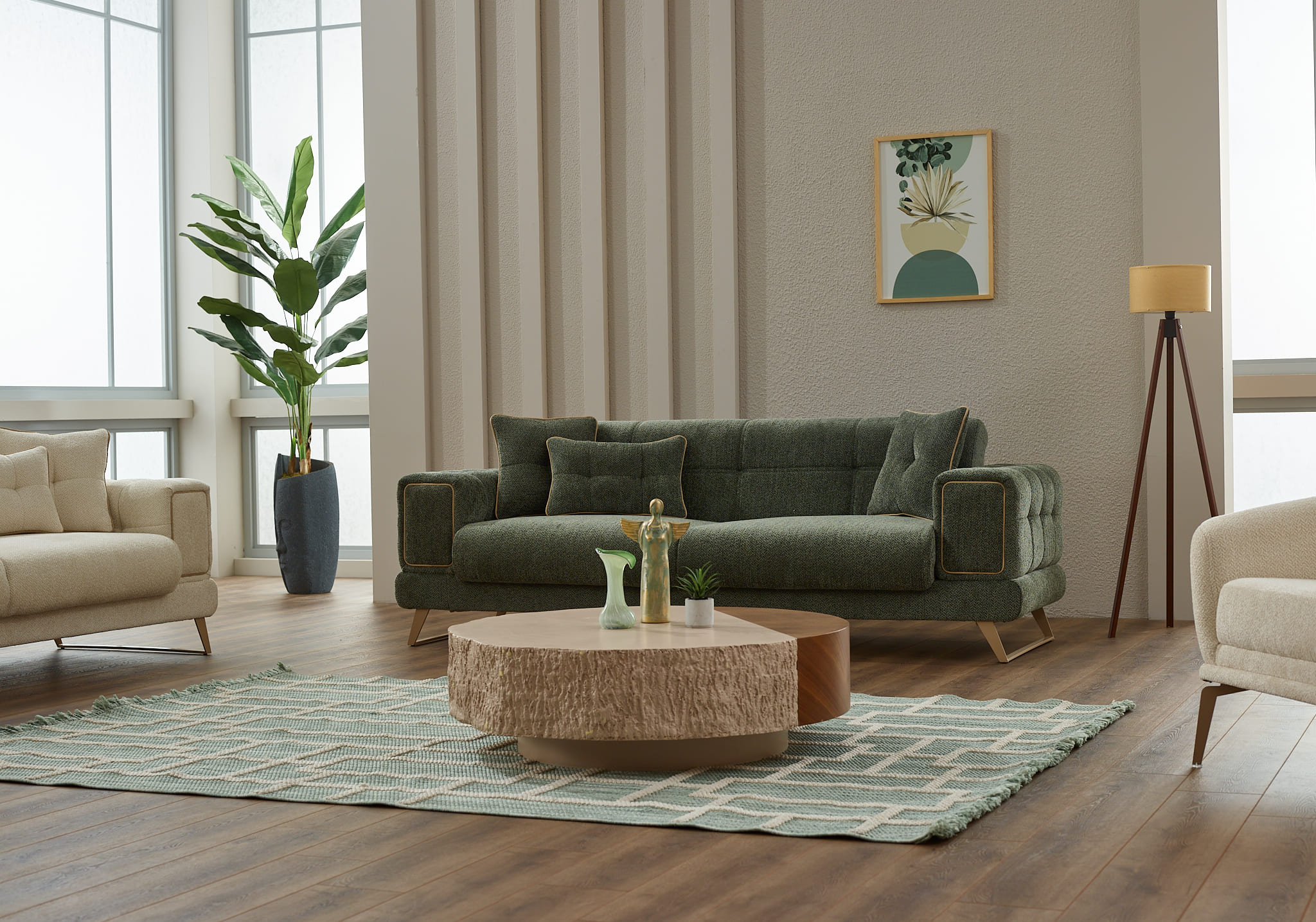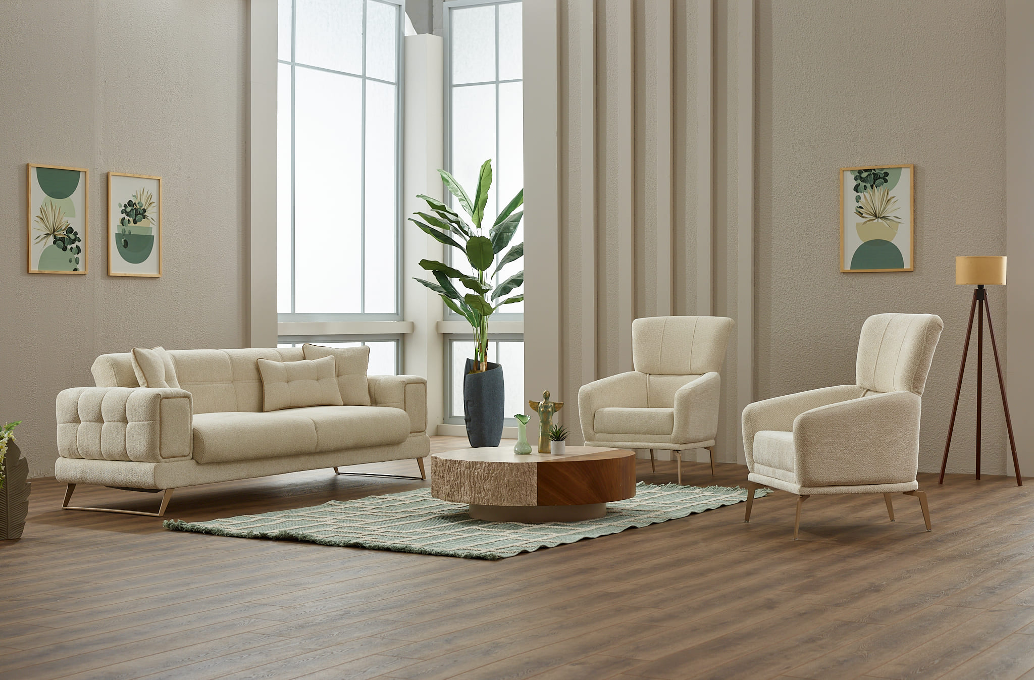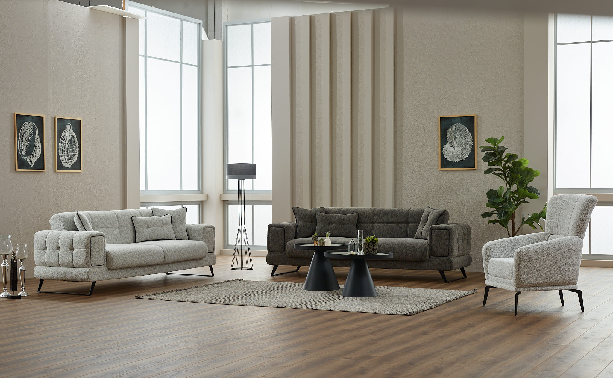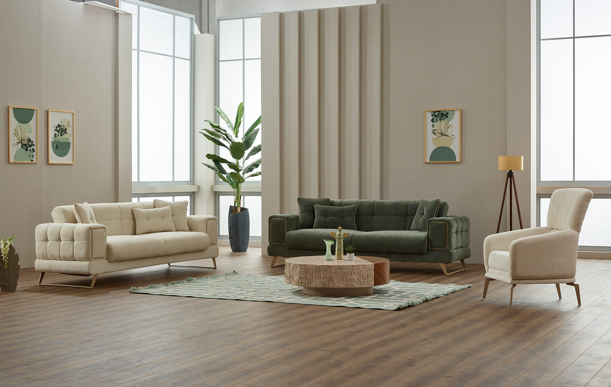 Ensemble salon moderne : canapés + fauteuil assorti