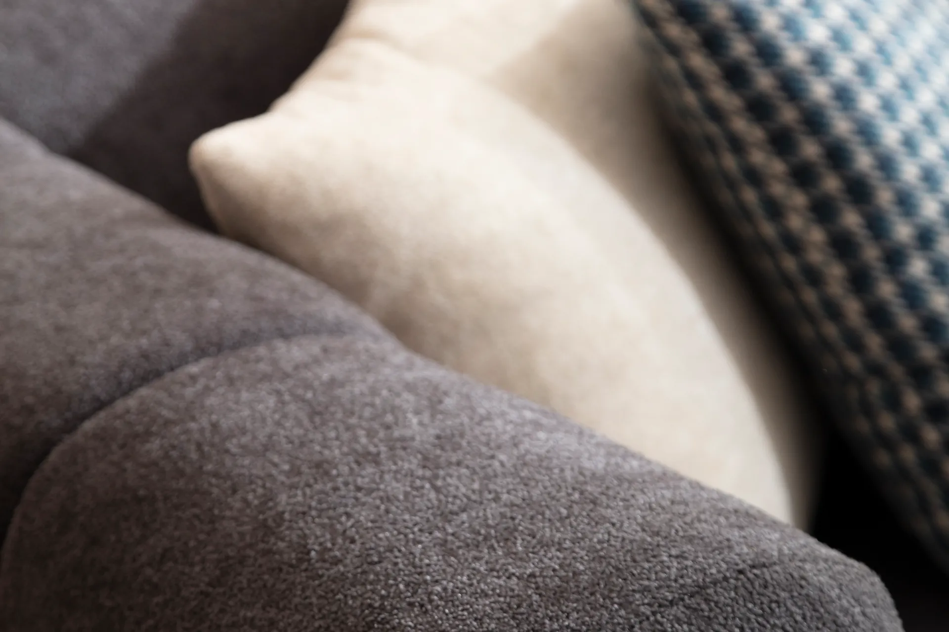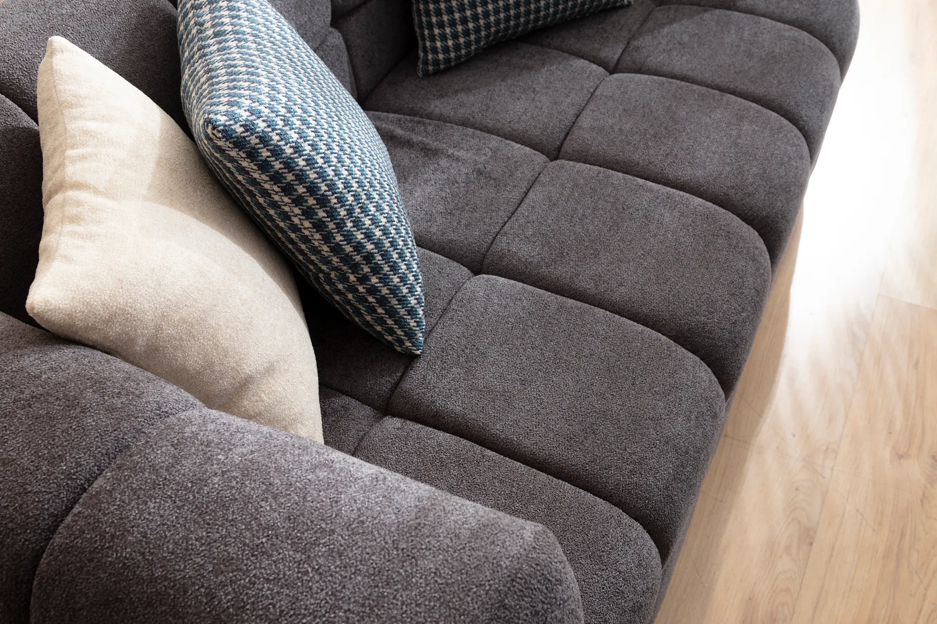 Son design modulaire avec méridienne intégrée offre une grande surface d’assise idéale pour se détendre, recevoir ou partager des moments en famille. Les volumes matelassés et les lignes profondes créent un effet visuel unique tout en garantissant un excellent confort. Les coussins décoratifs contrastés ajoutent une touche élégante et chaleureuse.