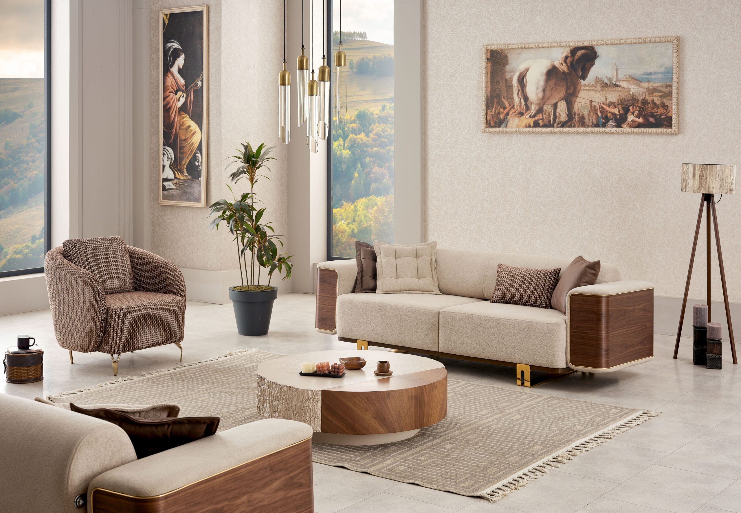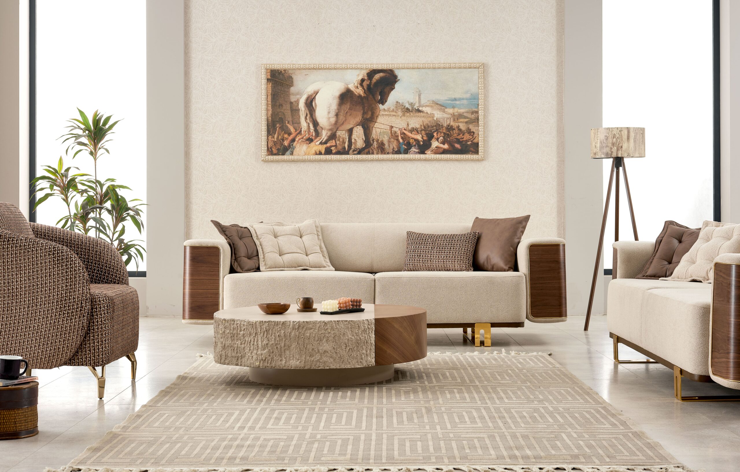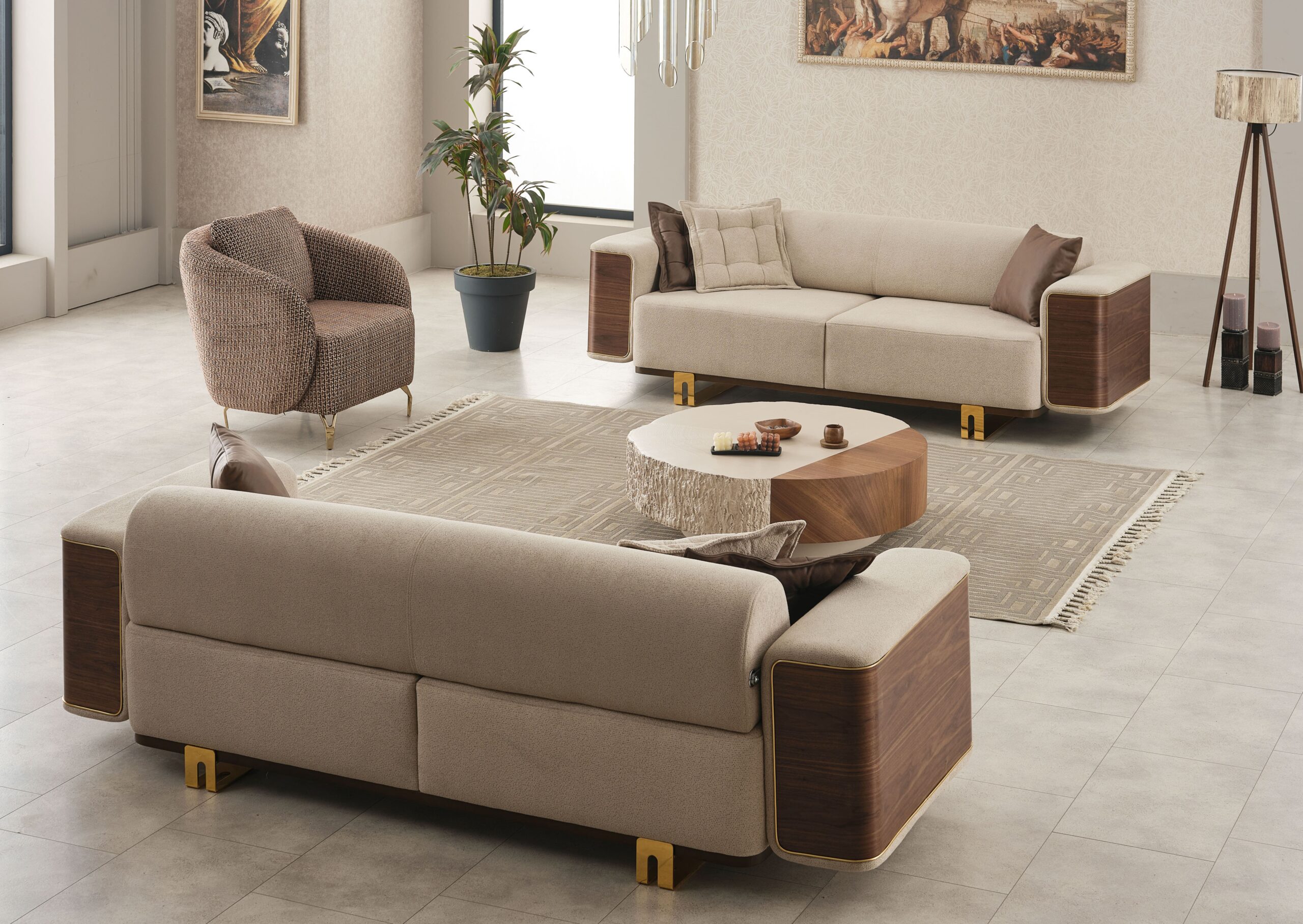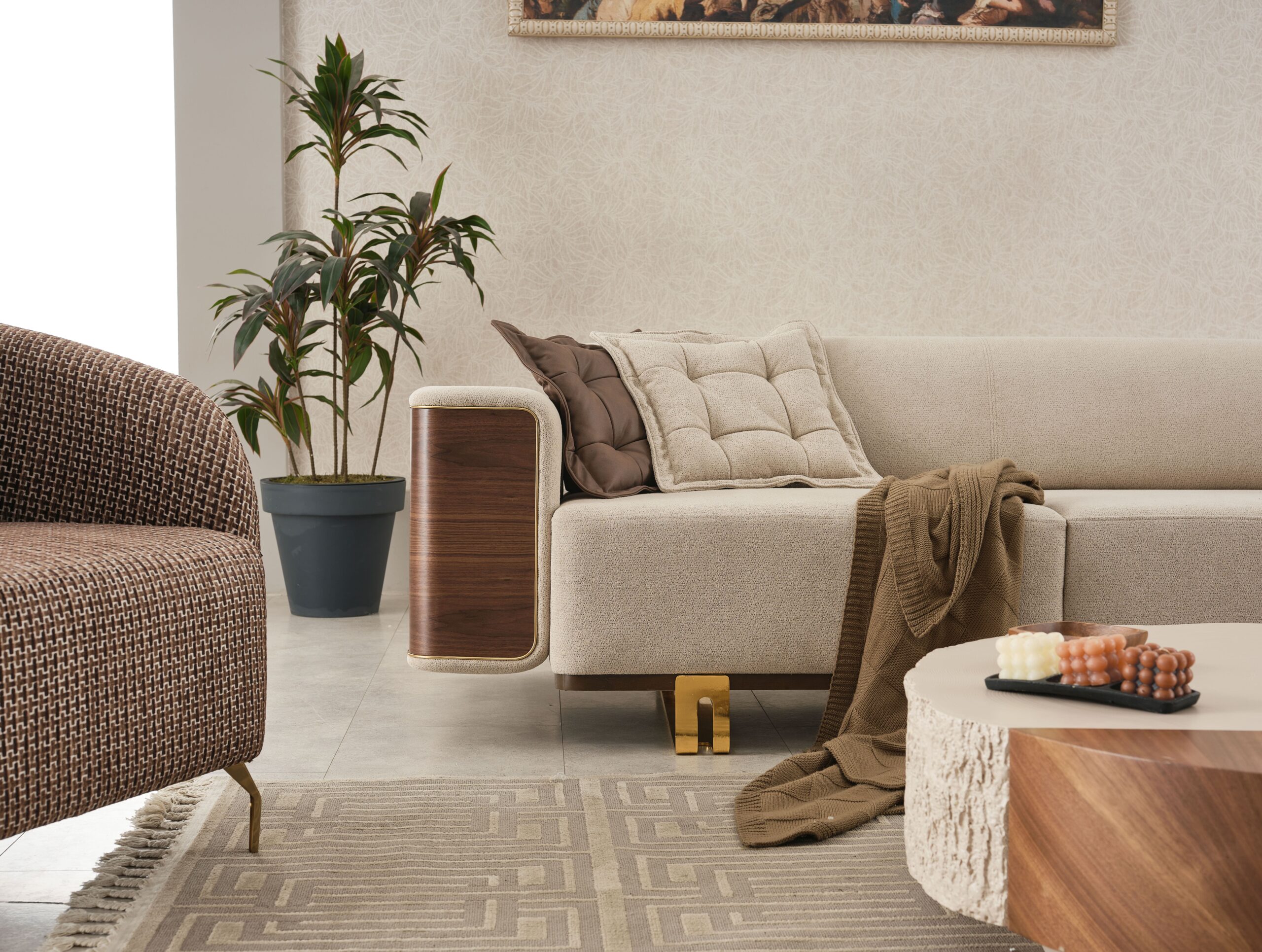 Ensemble Salon Contemporain Beige & Bois – Élégance Naturelle et Finitions Premium